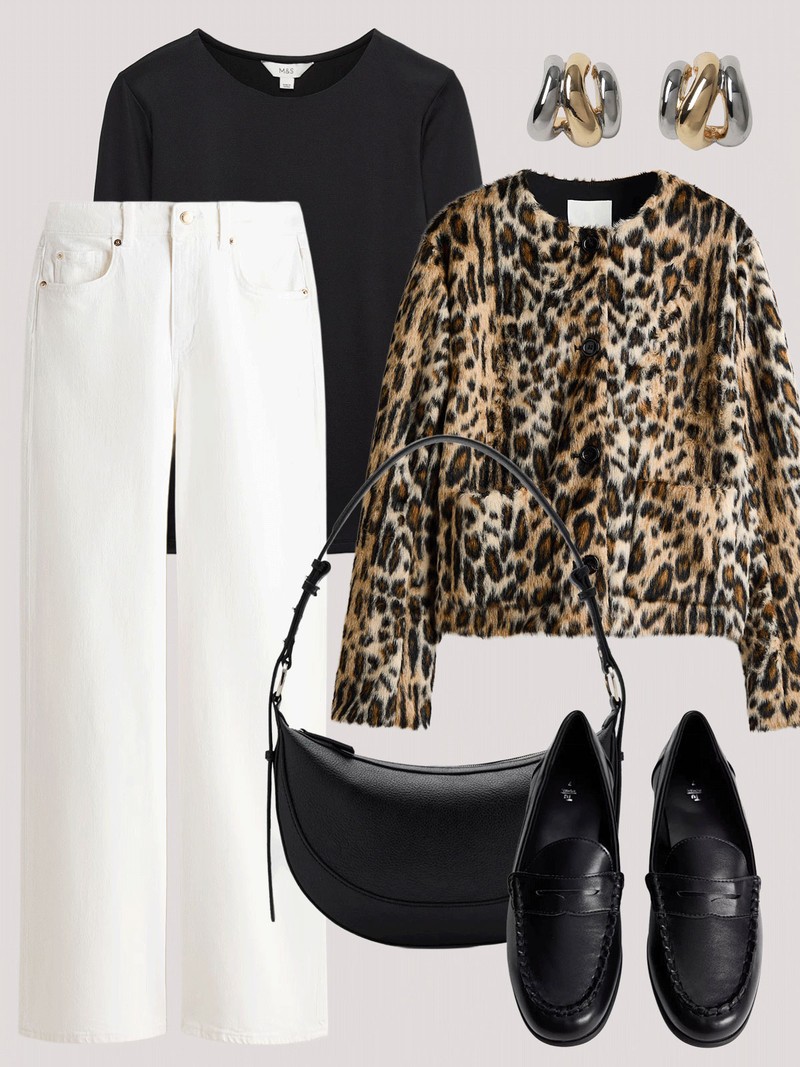 Make leopard the hero with a statement jacket. Ground it with a head-to-toe monochrome base to keep the look minimal and modern.