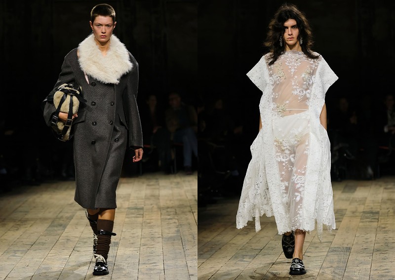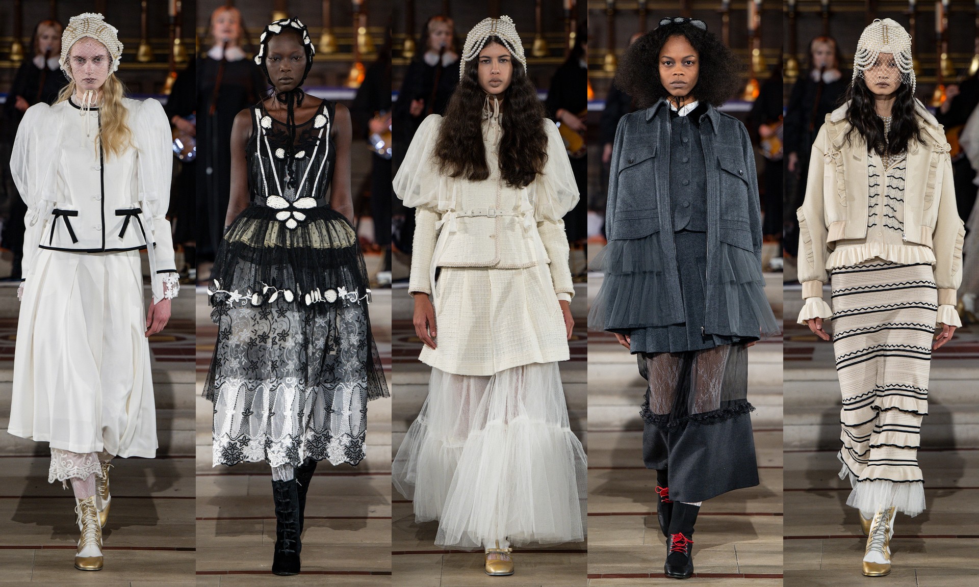 Romance took a darker turn at Simone Rocha, where delicate embellishments and oversized silhouettes were layered with her usual calling cards: pearls, lace and ruffles. A retro sporty thread ran throughout, adding a playful, modern twist. The result was signature Rocha – feminine and well-crafted, with each look feeling equal parts edgy and modern.