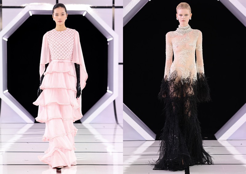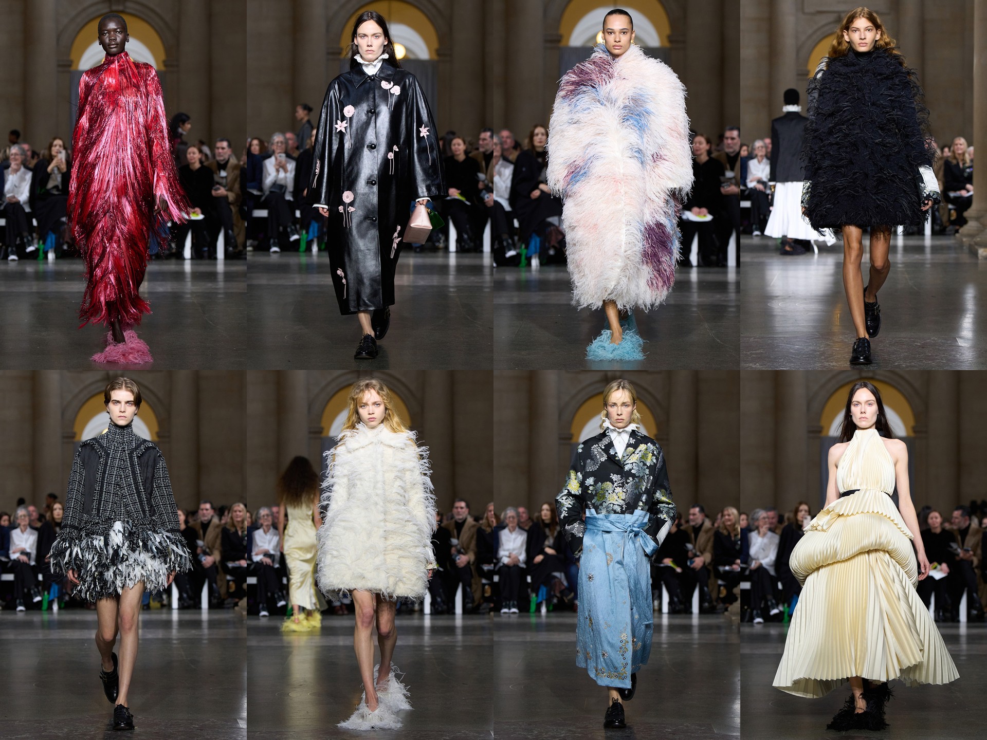This season, Bora Aksu’s signature romanticism had a more relaxed edge. Delicate lace, sheer layers and softly structured tailoring were offset by darker tones and vintage-inspired detailing, giving the collection a more introspective feel. Ruffled trims and fluid silhouettes added movement throughout – a modern take on femininity that felt both considered and wearable.