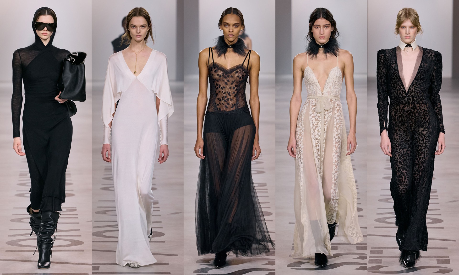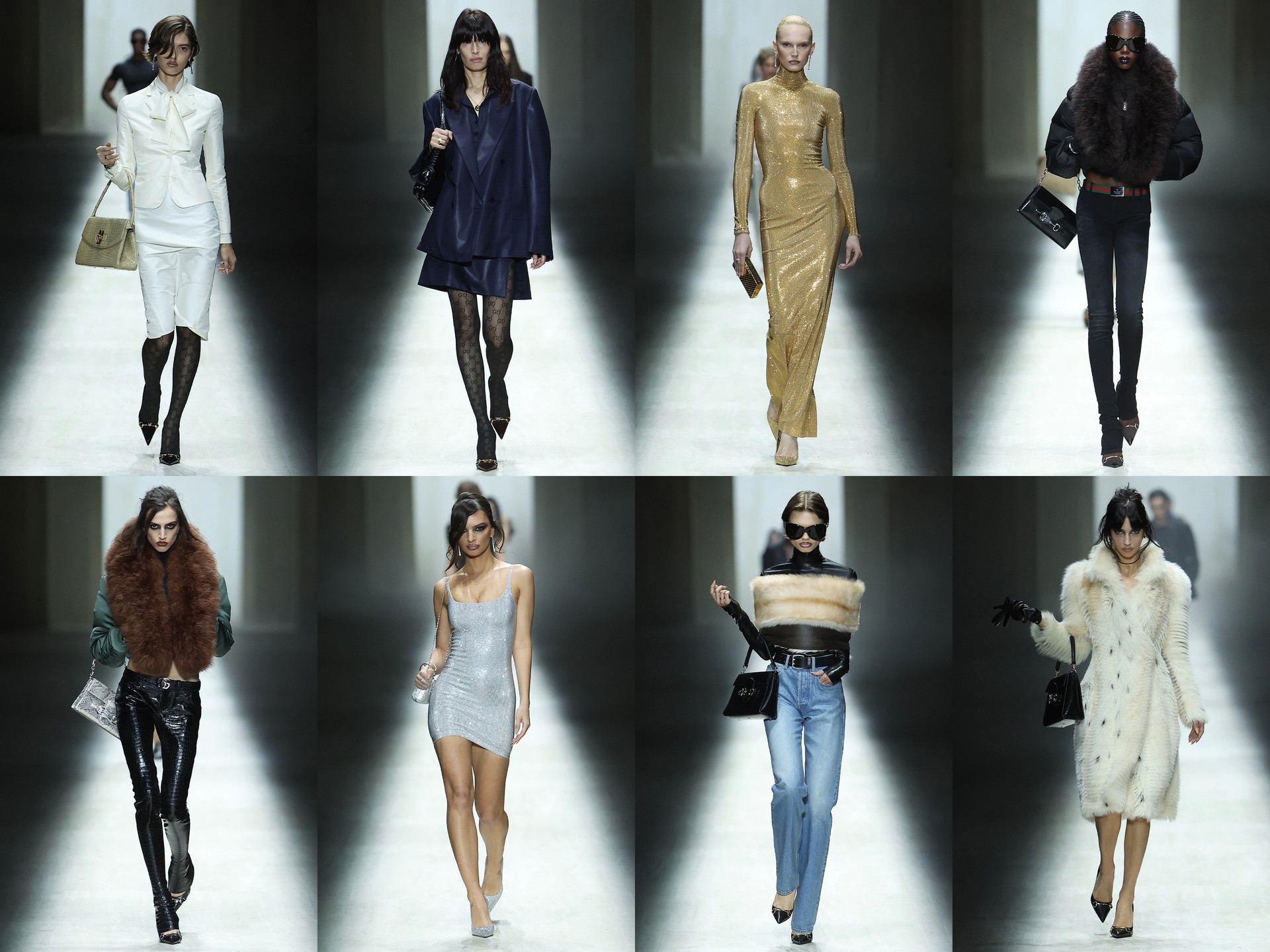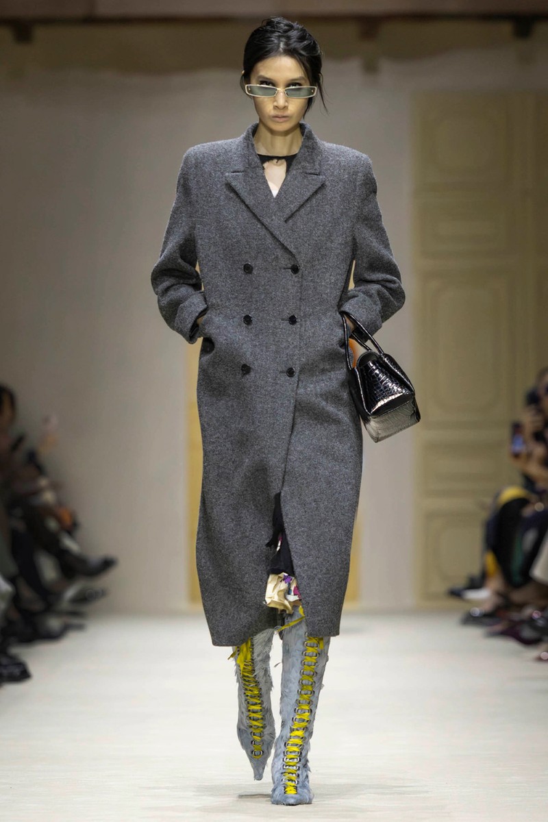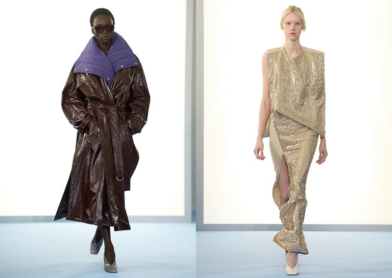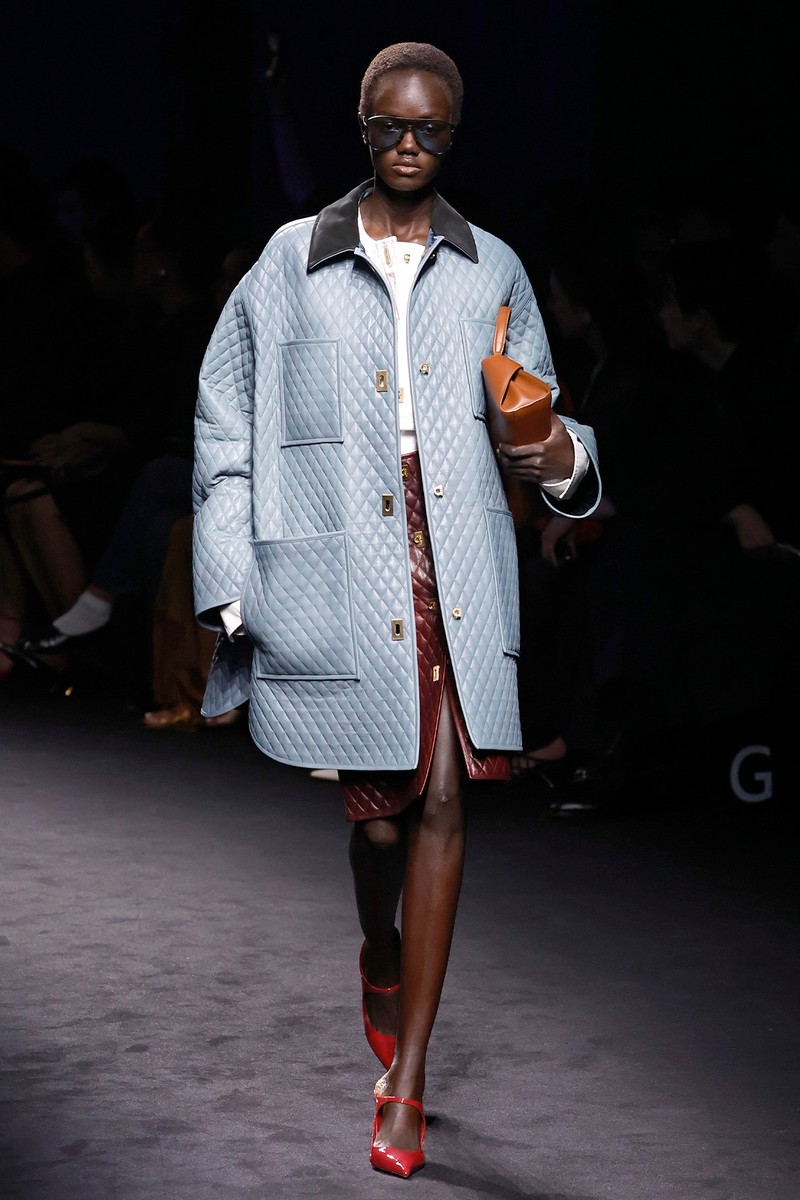Demna’s debut as creative director set a bold tone for the house. Sharp tailoring, high-shine leather and sultry slips nodded to the brand’s 90s heyday – but with a sharper edge. Accessories were supersized, silhouettes elongated and the mood unapologetically bold.