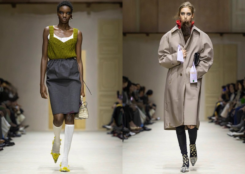 Prada delivered a collection that felt both directional and instinctive. Think twists on the classics – prim skirts, structured coats and retro knits – reworked with unexpected proportions. The palette moved from muddy neutrals to acid brights, while raw hems and offbeat styling kept things deliberately imperfect. Modern and thoughtful.