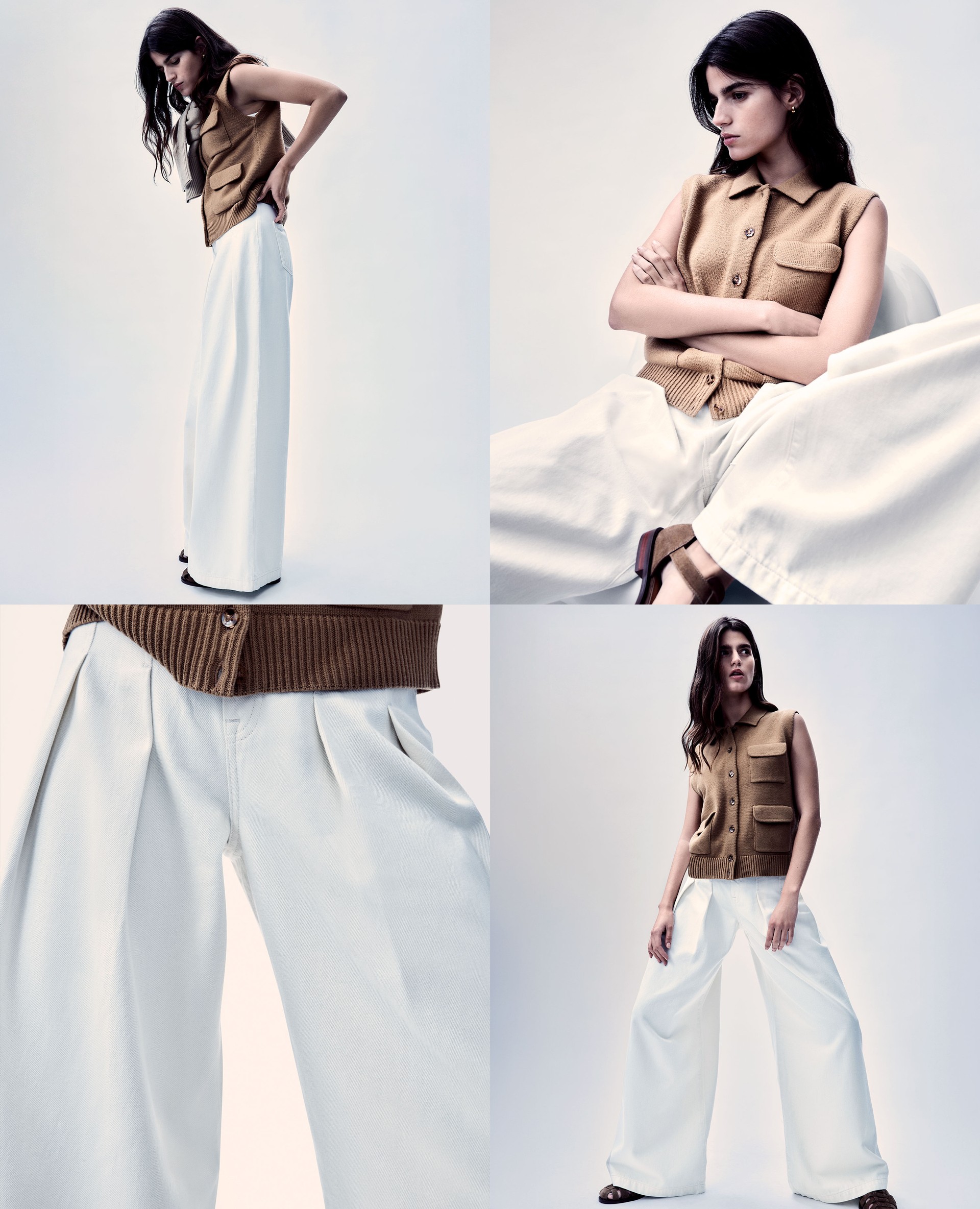 The barrel-leg silhouette is one of this season’s defining shapes – voluminous THROUGH THE LEG BUT TAPERED AT THE ANKLE FOR A FLATTERING FINISH. M&S delivers a version that feels directional yet wearable.